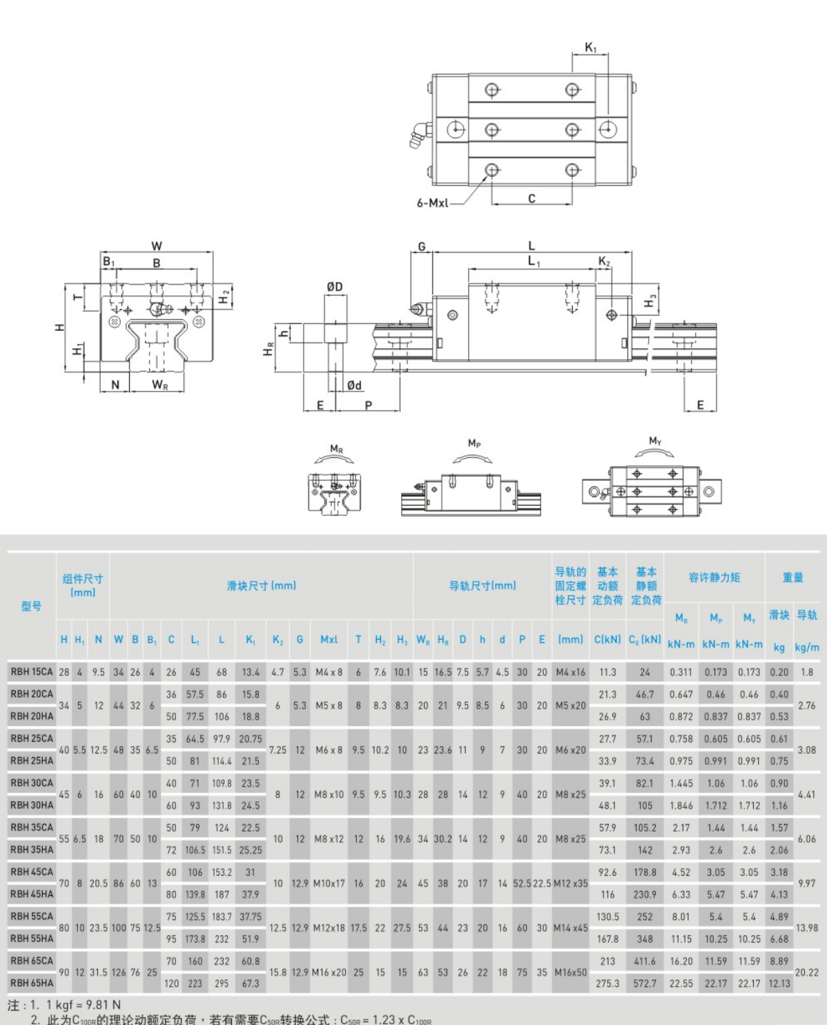 RB系列直线导轨以滚柱型滚动体取代了钢珠,为实现超高刚性与超重负荷能力而设,透过滚动体与导轨与滑块的线接触方式;让滚动体在承受高负荷时仅仅形成微量的弹性变形,更借由45度的接触角度的设计,让整体直线导轨达到四方向等高刚性、等高负荷能力的特性表现,透过超高刚性的实现,可大幅提升加工精度,达到高精度的诉求;由于超重负荷的特性,进而延长直线导轨的使用寿命,非常适合高速自动化产业机械及高刚性需求的设备使用。